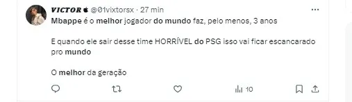 “O Mbappé (próximo melhor do mundo). Ele é o melhor jogador do mundo há dois anos. O cara fez mais de dez gols em Copa do Mundo, e não valeu o de pênalti (na final França x Argentina). Na artilharia da Copa do Mundo, pênalti não conta. Mas se você perder e o país for embora, aí conta. Em disputa de pênalti não vale.”, disse Vampeta.