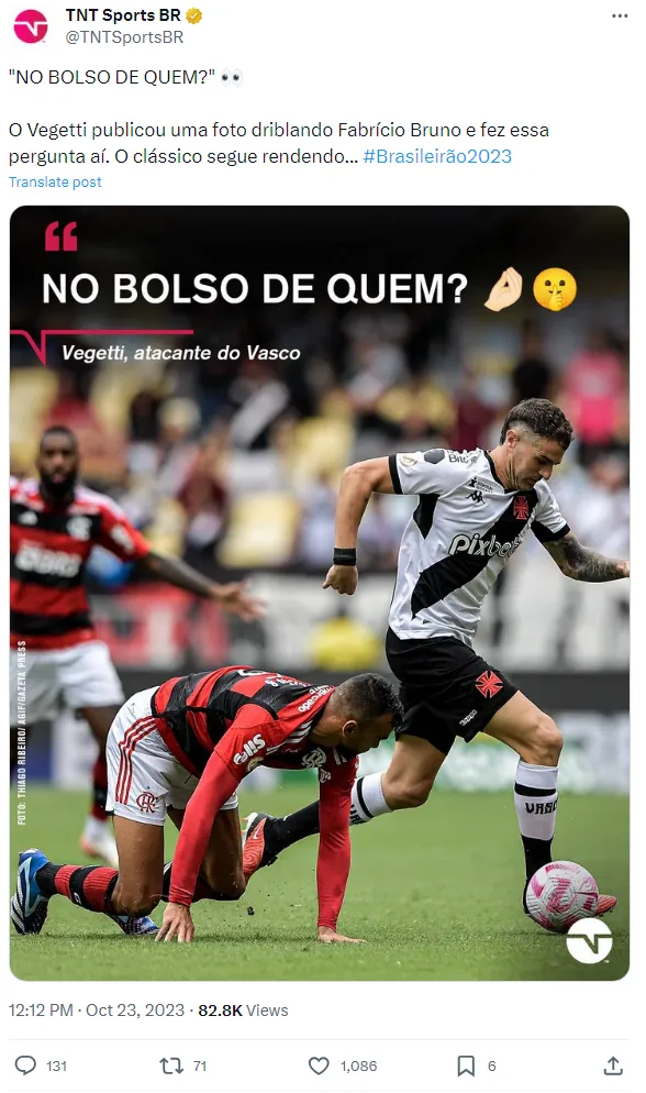 Na postagem, o artilheiro do Vasco ironizou a situação, escrevendo “No bolso de quem?” em uma foto que o mostrava driblando o zagueiro do Flamengo. A provocação gerou discussões entre torcedores e alimentou ainda mais a rivalidade entre as equipes no futebol carioca.