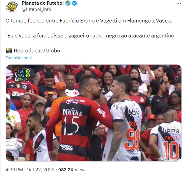 Além da vitória do Flamengo, o clássico ficou marcado por uma intensa disputa entre o defensor Fabrício Bruno e o atacante Vegetti, que se desentenderam durante a partida. A tensão no jogo atingiu seu ápice, com Fabrício Bruno prometendo um encontro na saída do estádio após o confronto.
