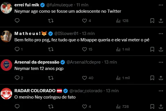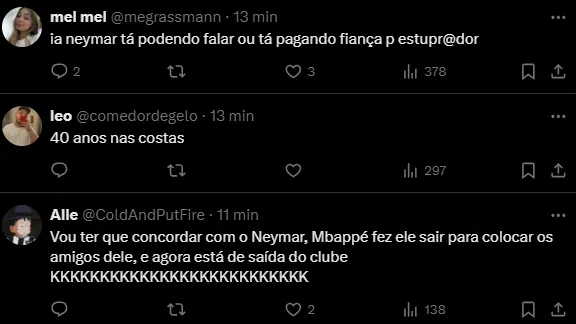 O craque brasileiro interagiu na postagem e causou com os fãs nas redes sociais ao comentar um emoji de risada. Recentemente, o astro já havia interagido em publicação que criticava Mbappé.