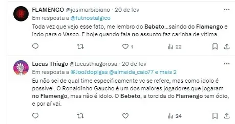 Quando questionado por Benja sobre quem seria o melhor “camisa 9” na história do Flamengo, citando nomes como Nunes, Adriano e Gabigol, Zinho não hesitou em cravar o nome de Bebeto. Para ele, Bebeto se destacou não apenas pelos gols, mas também pela sua importância nos títulos conquistados e pela sua atuação em campo.