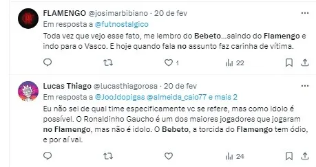 “Bebeto. Ainda teria o Romário, que fez gol pra caramba no Flamengo. Mas assim de título, de jogar junto, Bebeto era monstro”, disparou o ex-jogador.