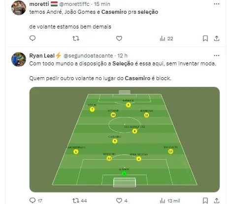 Apesar das boas performances dos meio-campistas nos amistosos, Zinho enfatizou que ainda é cedo para abrir mão de Casemiro, reconhecendo sua relevância como peça-chave no esquema de jogo da Seleção Brasileira.