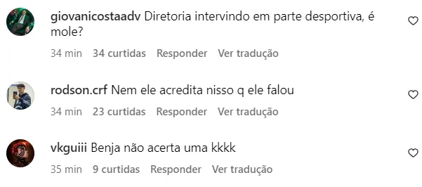 O apresentador revelou que o próximo destino de Gabigol será o Palmeiras, do técnico Abel Ferreira, que “morre de amores” pelo atacante flamenguista. Benja ainda revelou que Gabi está magoado com o clube carioca.
