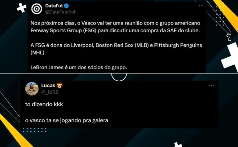O astro LeBron James é um dos sócios do grupo e, caso o negócio seja fechado, ele passará a fazer parte do Vasco, assim como faz parte do Liverpool na Inglaterra. A informação vem do Podcast Cruzmaltino.