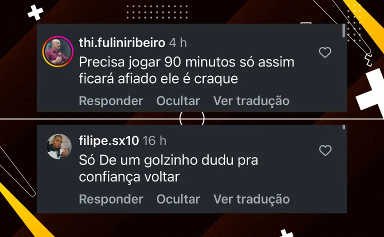 O apoio ao jogador não se restringiu à internet. No estádio, o clima foi semelhante, com a torcida ecoando gritos de “Dudu guerreiro” logo após o apito final da partida contra o Atlético Mineiro.