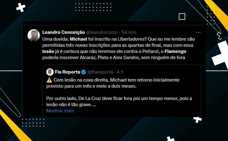 Robozinho é quem tem a situação mais complicada, destaca o S1 Live: “O caso de Michael é mais grave, e o atacante deve desfalcar a equipe por cerca de dois meses, ficando de fora das quartas de final da Libertadores”, publicou o portal.