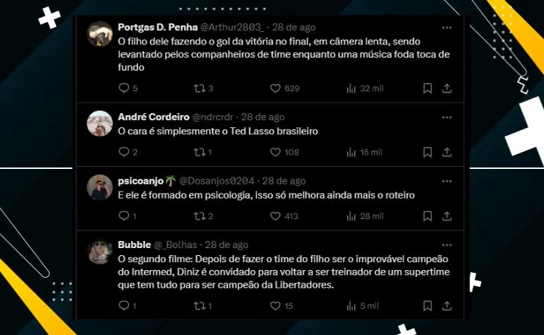 “Fui apurar. O filho do Diniz joga pela Santa Casa, uma faculdade de medicina de SP. Foi o único treino que ele deu, ontem. Ele não dará outros treinos ou treinará o time no campeonato (que começa semana que vem)”, frisa o jornalista.