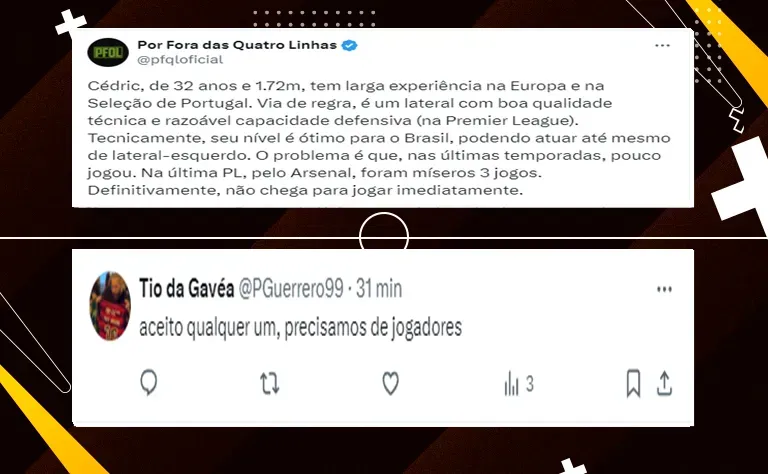Trata-se do português Cédric Soares, que deixou o Arsenal recentemente. De acordo com o jornalista Venê Casagrande, as conversas, apesar de estarem em estágio inicial, já estão em andamento.
