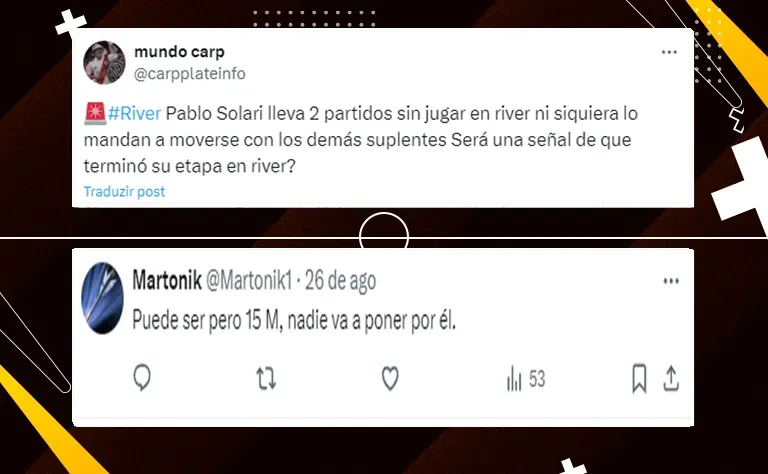 Pablo Solari está com 23 anos de idade e atua principalmente pelos lados do ataque. Na carreira, além do River, ainda soma passagens por Colo-Colo e Talleres.