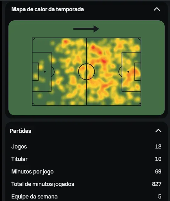 Roberto Firmino também traria uma qualidade acima da média para o meio-campo do Flamengo e, se possível, poderia descansar Arrascaeta. Isso porque, nos dias atuais, desde saída de Liverpool, ele joga como 10, podendo, inclusive, realizar saídas de bolas ainda no campo de defesa, como mostra o mapa de calor.