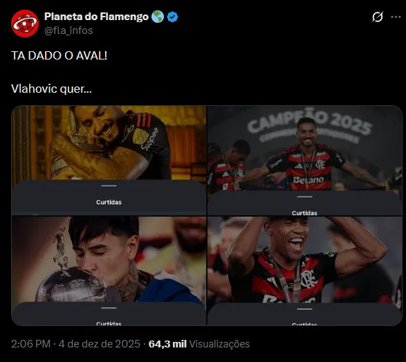 Vlahovic curte foto de jogadores do Flamengo após conquista da Libertadores
