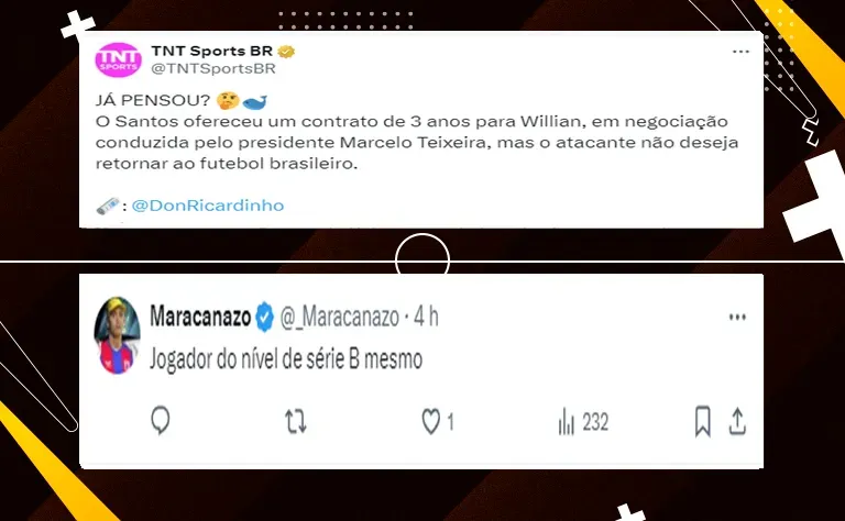 Porém, agora, Willian não renovou o contrato e recebeu uma oferta para voltar ao futebol brasileiro. Entretanto, desta vez, a procura veio por parte de um dos maiores rivais do Timão: o Santos.