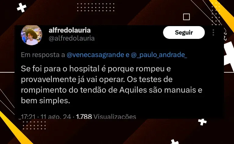 Há uma incerteza quanto a sua lesão, mas há uma grande possibilidade de que ele tenha rompido o tendão do joelho direito. Ainda não existe a confirmação, mas a comissão técnica terá que se preparar para não contar com ele por um bom tempo.