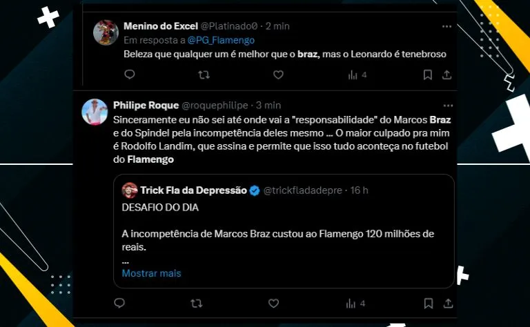 Oficialmente, o presidente Rodolfo Landim não comenta a pressão e reitera apoio no trabalho de Marcos Braz, além de transparecer total confiança no vice-presidente de futebol.