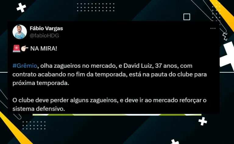 O Grêmio pode ter dificuldades em arcar com o salário de David Luiz. Foi dito que, para renovar com o Flamengo, ele pede um montante mensal de R$ 1 milhão, acima do que ele deveria ganhar devido à idade.