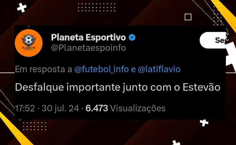 Outra ausência confirmada é o atacante Estevão, que vem sendo a principal arma ofensiva do Palmeiras ao longo desta temporada. Ele sofreu uma entorse no tornozelo e não deve se recuperar a tempo do jogo.