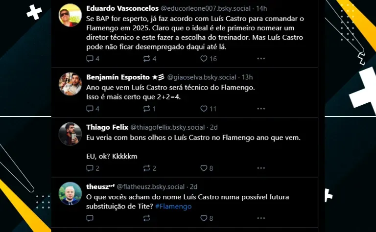 Flamenguistas lembram que quatro antecessores não perderam em casa na Libertadores: Domenec Torrent, Paulo Sousa, Vítor Pereira e Jorge Sampaoli. Até Renato Portaluppi e Dorival Júnior aparecem como bem avaliados.