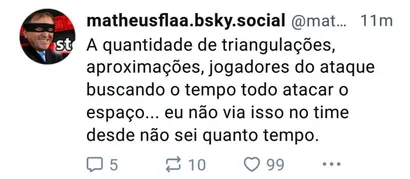 Nas redes sociais, a Nação Rubro-Negra acabou aprovando o que foi visto dentro de campo. Eles rasgaram elogios ao seu grande ídolo na estreia, e esperam que o desempenho continue até o final da atual temporada.