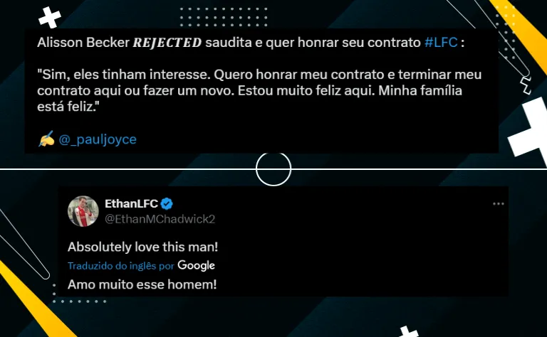 “Sim, eles tinham interesse. Quero honrar meu contrato e terminar em alta ou até mesmo renovar. Estou muito feliz. Minha família está feliz”, disse Alisson, sobre a oferta do mundo saudita.