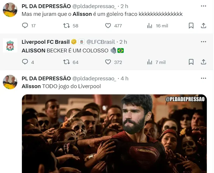 Na web, torcedores classificam o goleiro do Liverpool como o melhor do mundo na atualidade, à frente de outros grandes nomes, como, por exemplo, Ter Stegen, do Barcelona.
