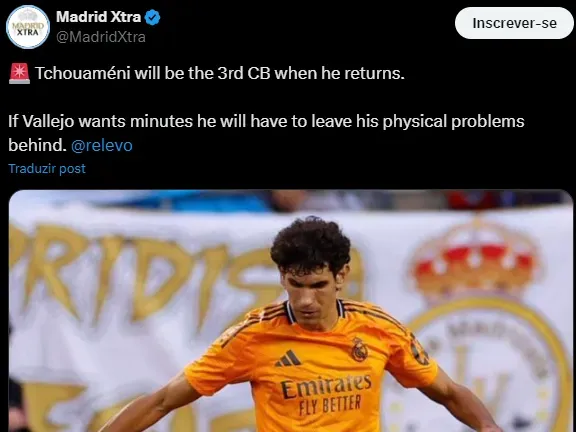 O treinador do atual vencedor da Champions League e La Liga pensa em usar Tchouaméni como terceiro zagueiro. Esse pensamento do comandante afeta o status de Vallejo no grupo.