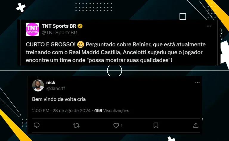 Em entrevista coletiva antes do jogo contra o Las Palmas, válido por LaLiga, Ancelotti, que deverá mandar um time a campo sem Rodrygo e com Guler entre os titulares, recomendou a Reinier que ele procurasse uma nova equipe.