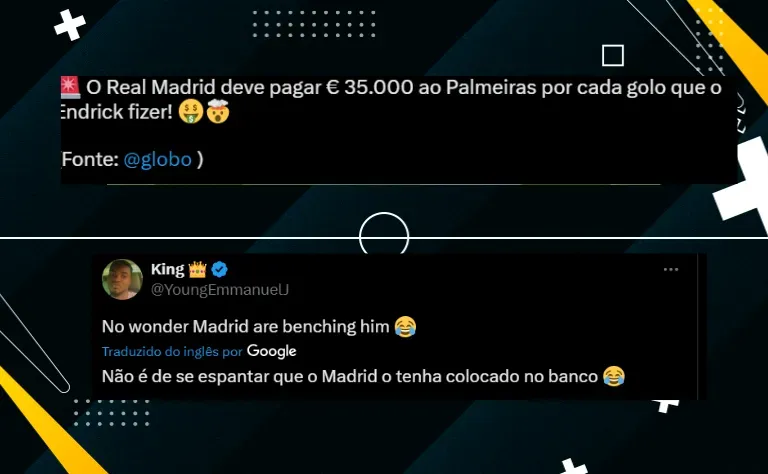 O próximo jogo do Real Madrid será nesta quinta-feira (29), fora de casa, por LaLiga, diante do Las Palmas. Endrick estará na reserva e espera-se que ele entre na segunda etapa.