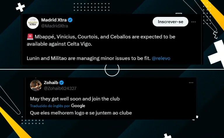 Nas últimas horas, Ancelotti enviou uma mensagem para ambos dos jogadores para entender o que eles sentem, afinal, nenhum deles está 100% fisicamente. “Preciso que você me diga que está tudo bem, apenas um ok”, é a mensagem que o comandante enviou para Vinicius Jr e Mbappé, segundo o Defensa Central.