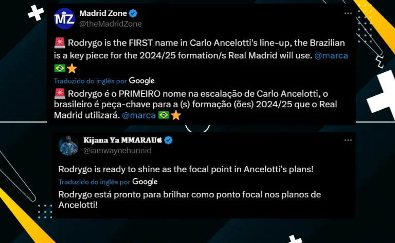 Segundo o jornal Marca, Rodrygo é o primeiro jogador na escalação ideal de Carlo Ancelotti na temporada 2024-25. O brasileiro é a peça-chave para as formações, acima de qualquer outro atleta.