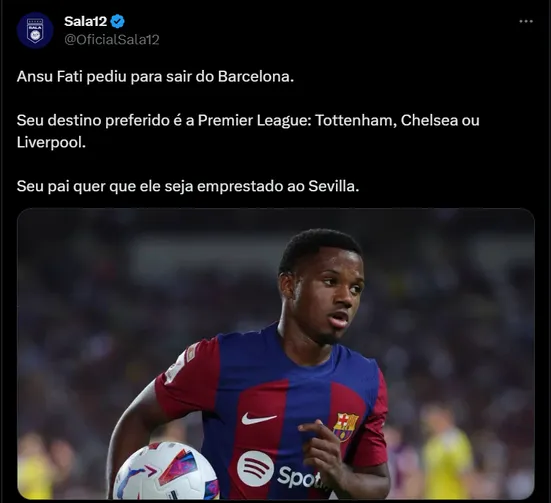 Contudo, Ansu não teve muitas oportunidades como titular nesse início de temporada e já decidiu que irá deixar o Barcelona. Por conta disso, muitos clubes se interessam na sua contratação.