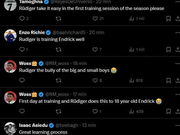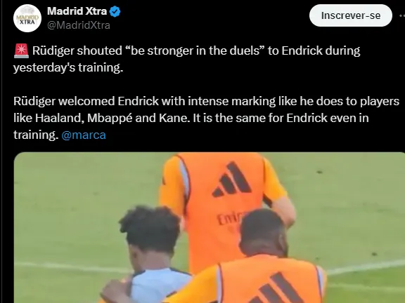 Rüdiger deu boas-vindas a Endrick no melhor estilo do zagueiro alemão, assim como faz com craques como Haaland, Mbappé e Kane. O defensor, inclusive, já faz cobrança em tom de orientação ao brasileiro do Real Madrid.