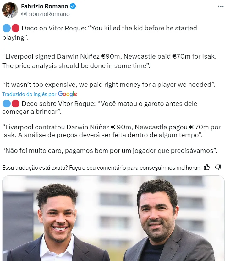 Neste momento, a ideia do Barcelona é de negociar o futebol de Vitor Roque em definitivo, ou seja, sem a opção de empréstimo. O Arsenal, ciente, prepara uma proposta de 45 milhões de euros pelo jovem e tem uma carta na manga.