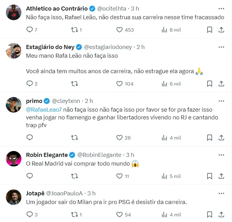 No mercado, Leão é avaliado em 90 milhões de euros (R$ 483 milhões). O Milan, que renovou com o atleta recentemente, não tem nenhuma intenção de vender seu grande craque.