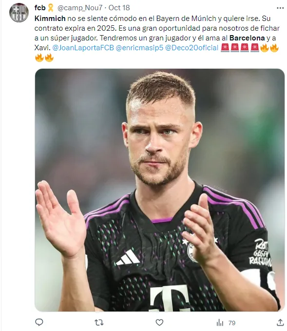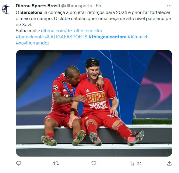 De acordo com informações, além de Thiago Alcântara, atualmente no Liverpool, o clube espanhol também pode preparar uma investida pelo meio-campista Joshua Kimmich, do Bayern de Munique. Vale a pena lembrar que, durante a última janela, o meia alemão já tinha sido especulado no Barça.