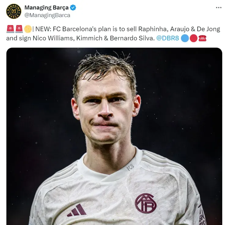O Barcelona trabalha para realizar uma grande reformulação em seu elenco visando a próxima temporada e, no mercado, traça um plano bastante ambicioso pelas contratações de Kimmich, Bernardo Silva e Nico Williams.