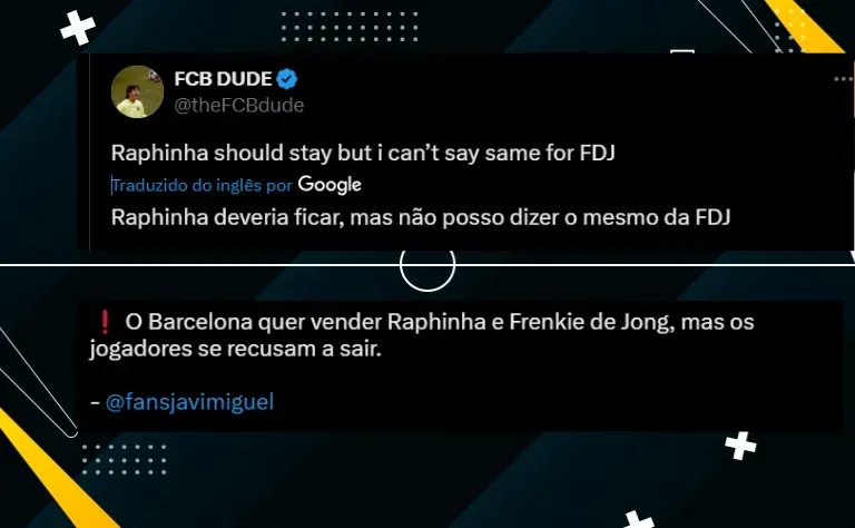 Raphinha e De Jong não querem sair. Por parte do brasileiro, ele está feliz no país e quer mostrar para o novo treinador que é capaz de ser titular no time do Barcelona para a temporada.