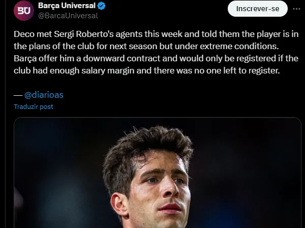 “Deco encontrou-se esta semana com os agentes de Sergi Roberto e disse-lhes que o jogador está nos planos do clube para a próxima temporada, mas em condições extremas”, informa o Diário As.