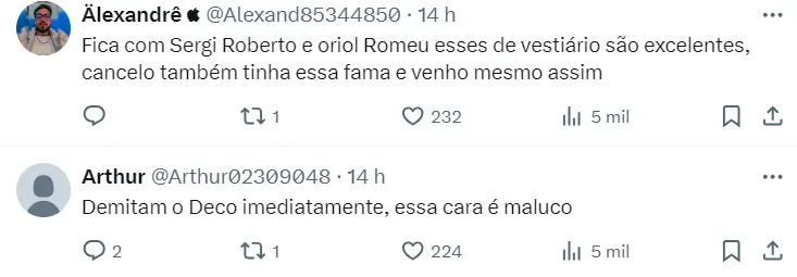 O clube segue de olho na contratação de mais um volante. Segundo fontes, Deco quer um jogador que chegue para ser titular absoluto do time de Flick. Nomes são mantidos em sigilo.