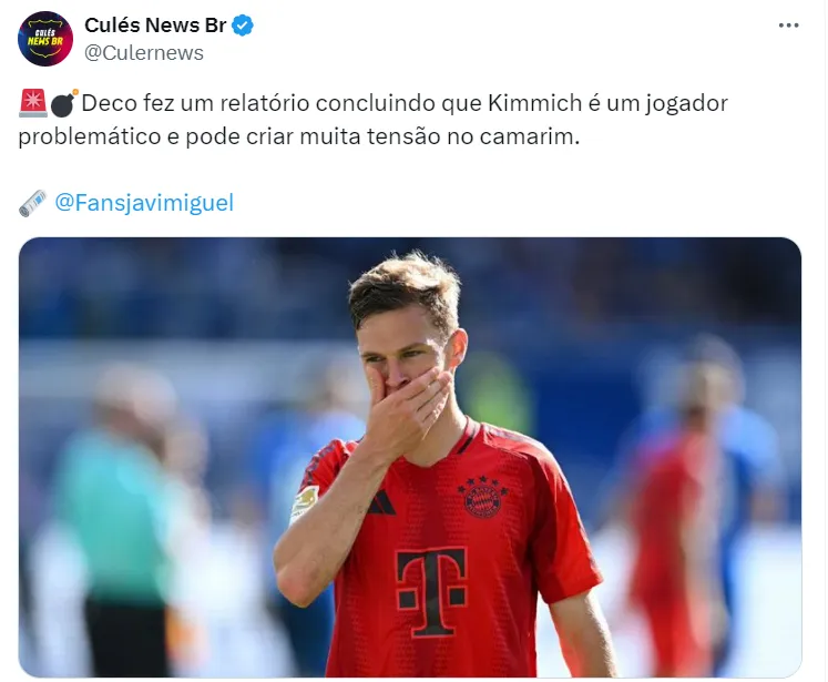 Kimmich era um dos nomes que estavam sendo estudados. Um acordo não vai acontecer. Deco fez um relatório concluindo que o alemão é problemático e que poderia trazer uma tensão desnecessária para o elenco. A informação vem do Diário AS.
