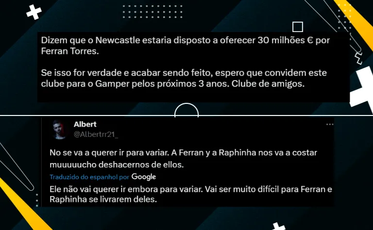 Ferran Torres, por sua vez, pode dar adeus à LaLiga para jogar na Premier League com as cores do Newcastle. Segundo informações do portal ManagingBarça, voltado ao clube catalão, o espanhol considera seriamente um novo desafio. Além do portal, relatos da Inglaterra confirmam a vontade do espanhol.
