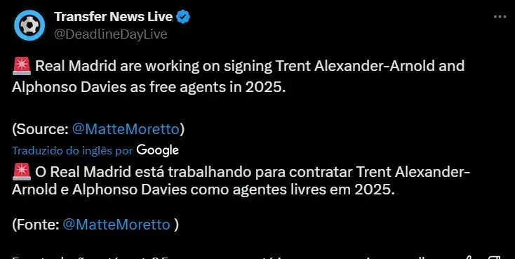 O Real Madrid já trabalha para ter Arnold em 2025. A ideia é tirá-lo da Inglaterra sem custos. Para isso, o clube até apela para seus jogadores, como Bellingham, amigo pessoal do camisa 66.