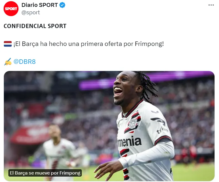 O Barcelona está no mercado para reforçar o time de Flick e fez uma oferta ao Bayer Leverkusen pelo lateral-direito/ala Frimpong, que fez grande temporada e estará presente na Eurocopa 2024 com a Seleção de Países Baixos.