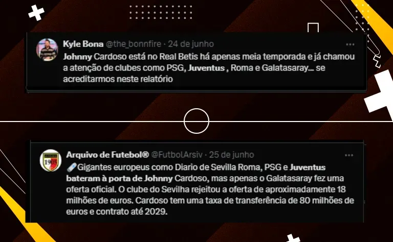 Segundo o Tutto Mercato, na Itália, Johnny Cardoso, do Real Bétis, foi colocado como prioridade na Juventus. Além disso, a Roma também deseja a contratação do volante de apenas 22 anos.