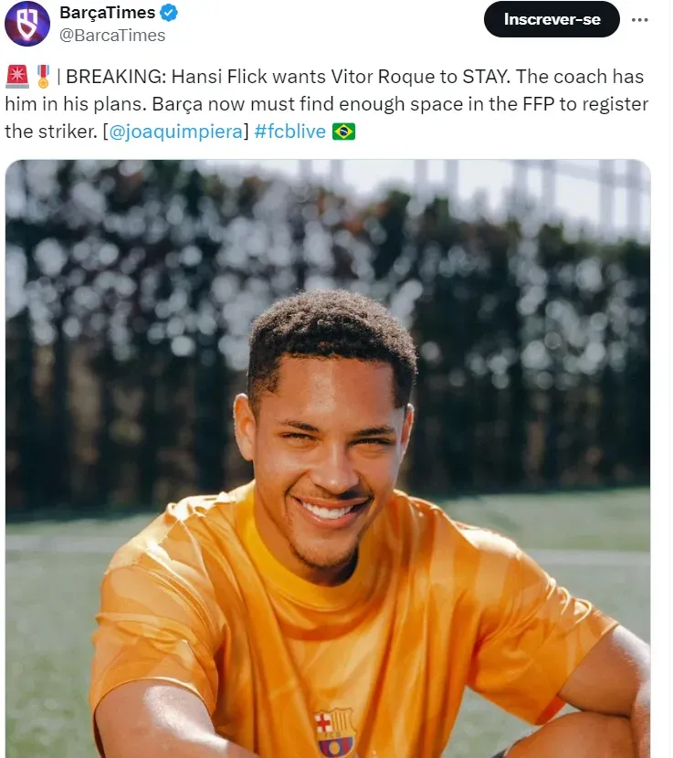 No entanto, a posição de Flick não garante que o Barcelona não ouvirá interessados por Vitor Roque. Segundo fontes, há pessoas de dentro do clube que acreditam que o jogador não tem capacidade para atuar na Catalunha. No mercado, a Juve está interessada.
