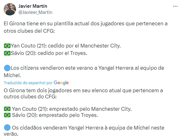 Apesar de pertencer ao Manchester City, o time inglês não descarta uma venda. Yan Couto, inclusive, também já apareceu ligado a clubes como Real Madrid e Bayer Leverkusen.