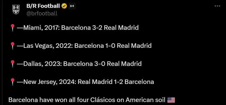 Nos Estados Unidos, o Barça venceu o primeiro duelo frente a frente com o Brancos de Ancelotti: vitória por 2 a 1, com o garoto Pau Víctor marcando os dois gols do time de Hansi Flick. Nico Paz descontou para os merengues.
