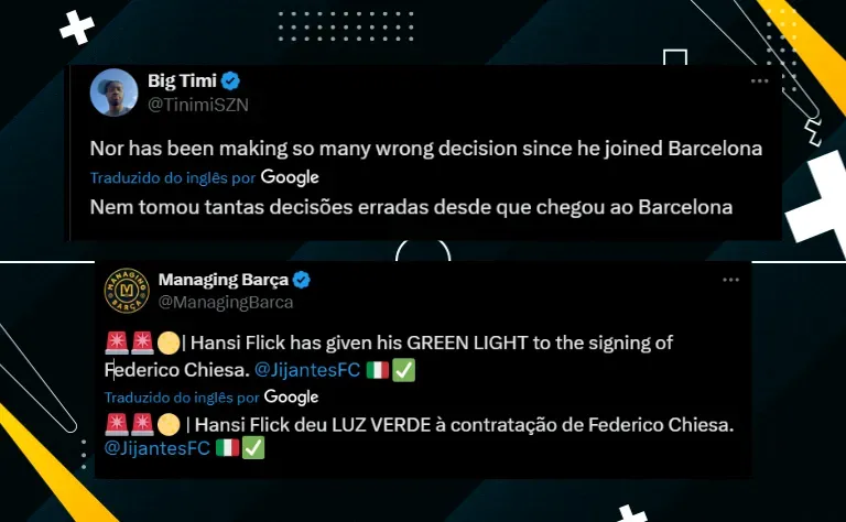 Próximo de firmar um acordo milionário de quase 100 milhões de euros anuais com a Nike, há pressa dentro do Barcelona por reforços, uma vez que o plano de Hansi Flick é brigar por LaLiga e Champions League.