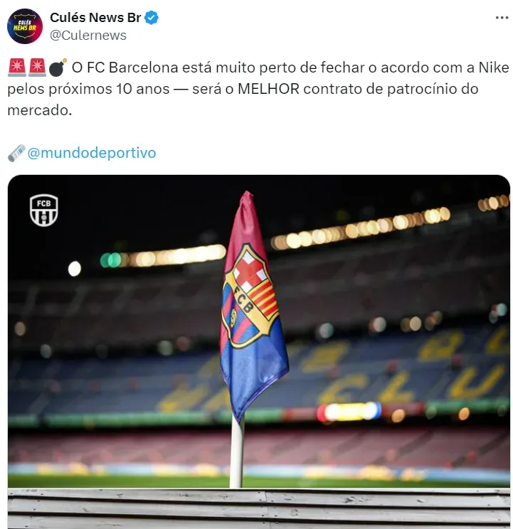 Focado totalmente na próxima temporada do futebol europeu, o Barcelona do técnico Xavi está perto de anunciar um acordo histórico com a Nike pelos próximos 10 anos. Esse novo contrato pode garantir grandes contratações para os torcedores do clube da Catalunha.