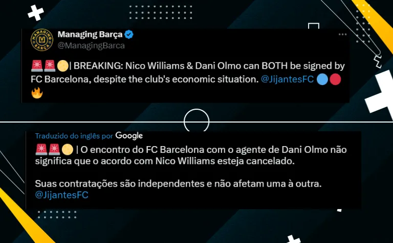 O Barcelona, apesar de não viver seus melhores momentos financeiros, tem condições e quer fechar a contratação de Nico Williams e Dani Olmo em uma só cartada, como uma resposta ao Real Madrid e seus rivais.